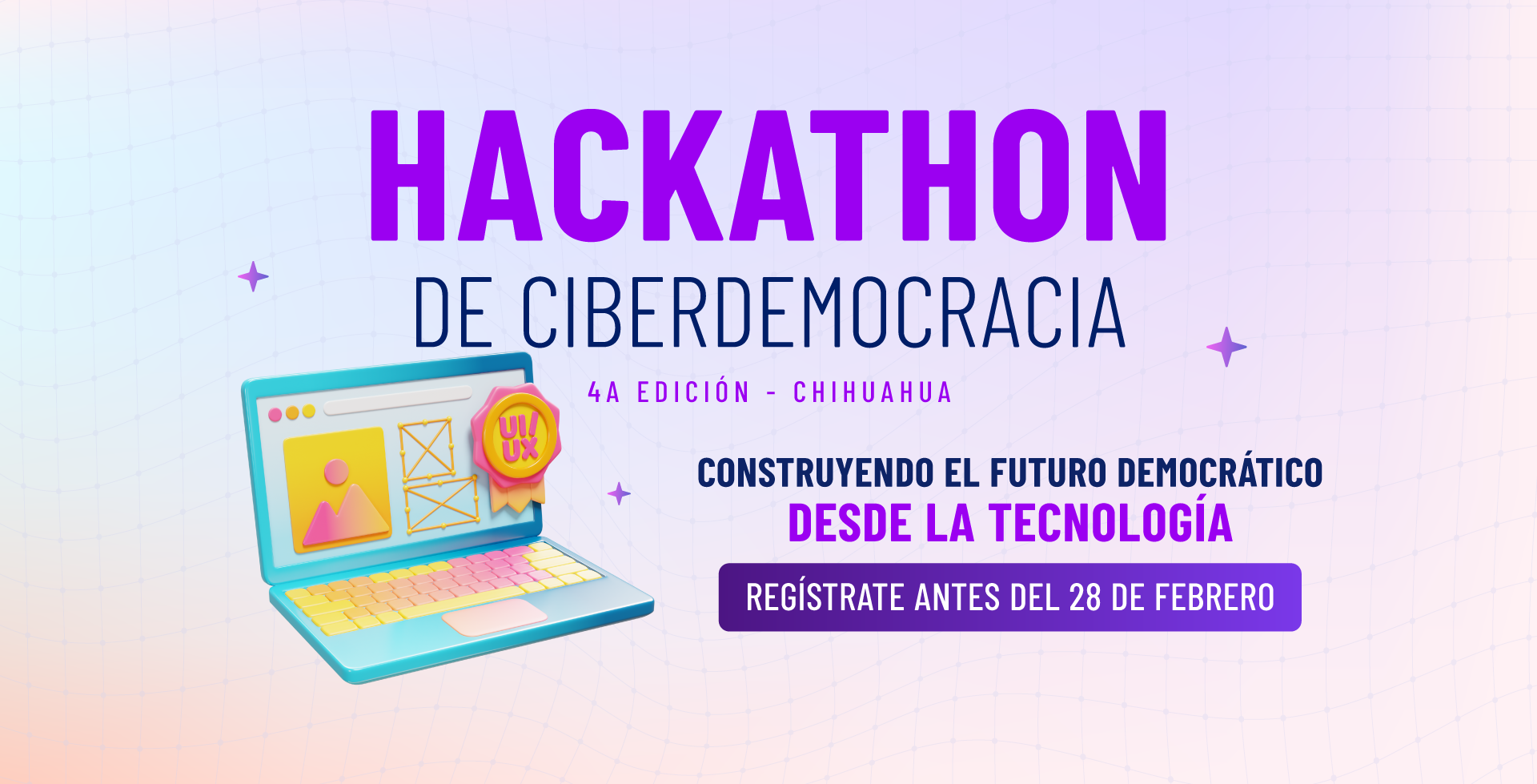 La democracia del siglo XXI se construye con ideas, participación y tecnología; por ello, ante los desafíos que exigen soluciones innovadoras para fortalecer la confianza ciudadana, el Instituto Estatal Electoral de Chihuahua, en coordinación con la Sala Regional Guadalajara del TEPJF y el Tec de Monterrey Campus Chihuahua, convocan a las juventudes al 4º Hackathon de Ciberdemocracia.